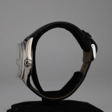 Condition: Watch appears to be working at time of catalogue. Crown functions, sets time. Leather worn