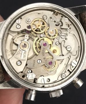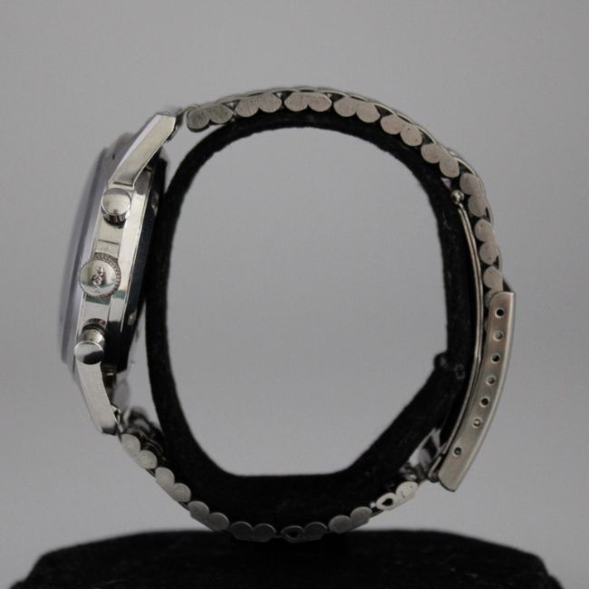 Condition: Watch appears to be working at time of catalogue. Crown functions, sets time. Chronograph start/stop/resets note top pusher starts, bottom pusher pauses and resets. Chronograph counts 1 min. Chronograph not fully tested.