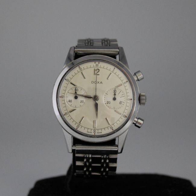 DOXA - Doxa Vintage Twin Chronograph ref 7105A. 36mm Steel case with screw caseback. Doxa signed crown. Silver dial. Aftermarket bracelet.