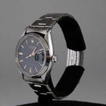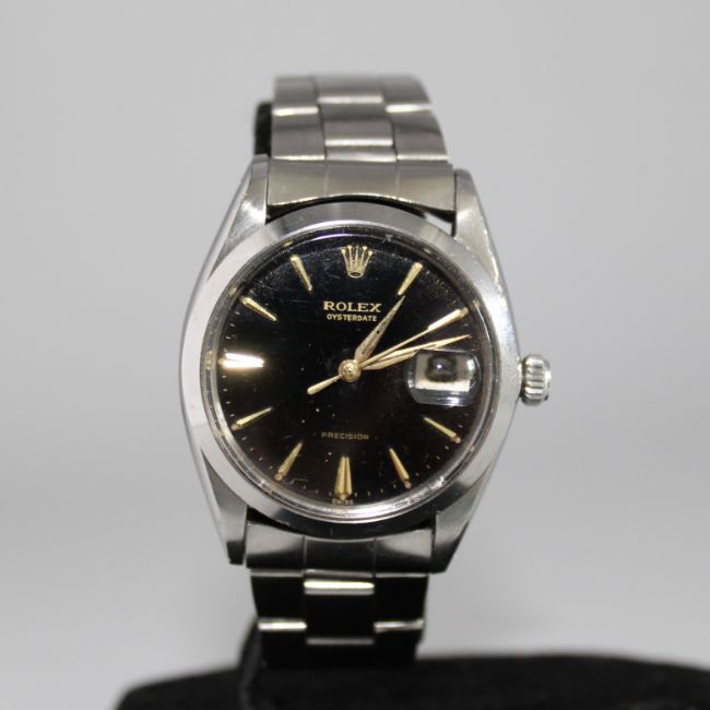 ROLEX - Rolex Oysterdate Precision . 34mm. Manual. Black gilt dial, steel bracelet with clasp signed Rolex.