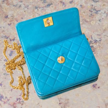 Eye catching turquoise soft soft leather bag, versatile to carry on shoulder or crossbody, or as a clutch bag.
