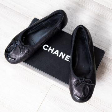 Chanel Black Leather Ballet Pumps