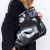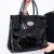 Double handles, silver tone hardware, turn lock closure, removable clochette, carry on shoulder or in crook of the arm, four metallic feet on the base.