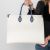 Double leather handles in smooth navy leather with an additional two long leather shoulder straps in smooth navy leather