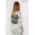 Denim with distressed design, smooth green leather straps with interweave silver tone hardware .
