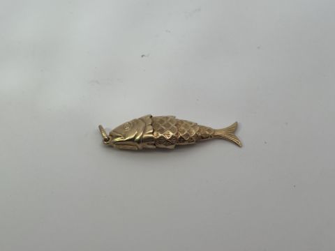 9ct Gold Articulated Scaled Fish Charm Pendant 3.5g