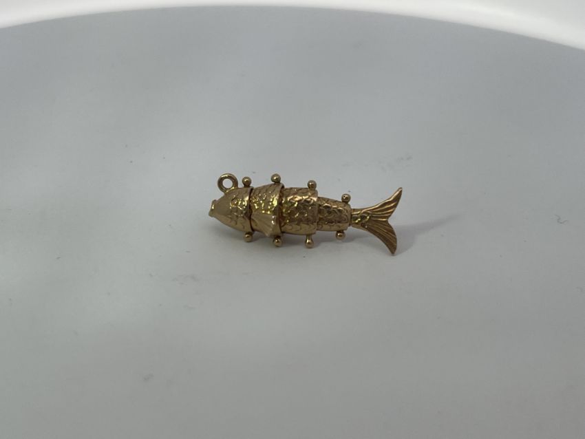 9ct Gold Articulated Scale Fish Charm Pendant 2.8g