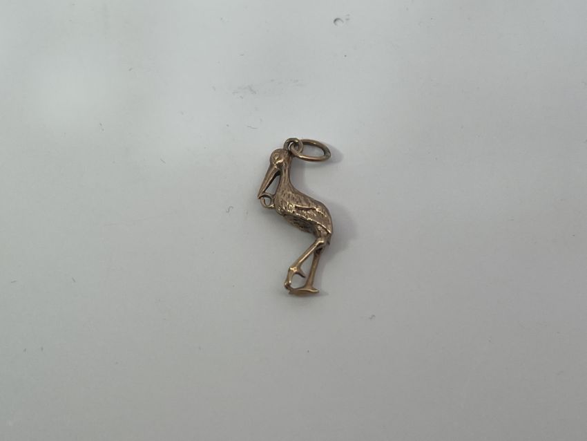 9ct Gold Stalk Crane Bird Charm Pendant 2g